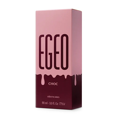 • Embalagem rosa e castanho de produto EGEO CHOC O Boticário