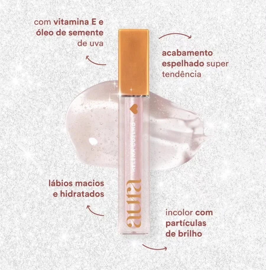 Um brilho poderoso como tu: - Efeito espelhado - Sensação de lábios hidratados graças aos ativos presentes na fórmula - Não é pegajoso ou incomodativo - Formulado com Vitamina E e óleo de semente de uva para uma sensação de lábios hidratados.