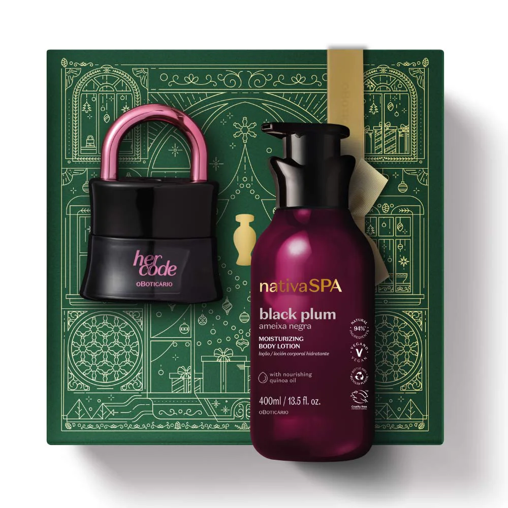 O Kit de Natal Her Code Touch Ameixa Negra contém: