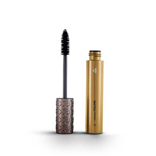 • Máscara de pestanas com tubo dourado e tampa cinzenta com corações
